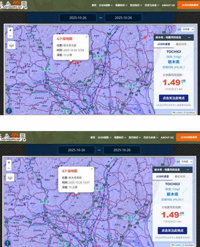 日本每年有数千次地震,但间隔仅3分钟的“双击”事件在栃木县历史上罕见(过去10年类似案例不足5次)。