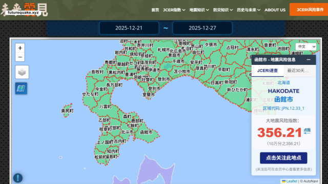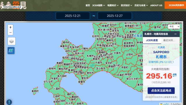 北海道今日正处于历史低温天气,冬季夜晚发生地震会放大震后灾害。JCERI提醒相关地区人员关注下周地震风险。