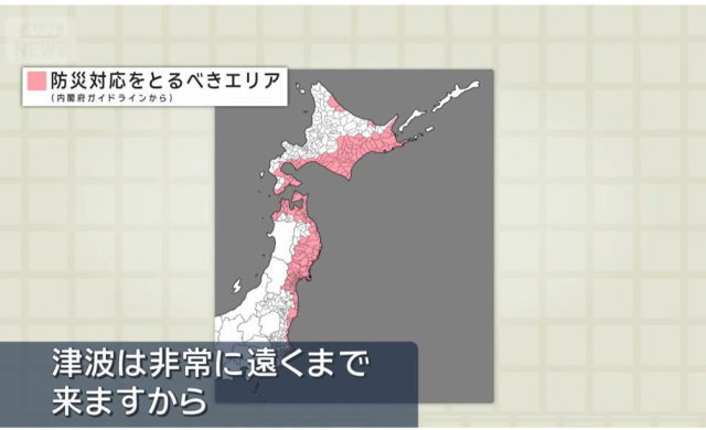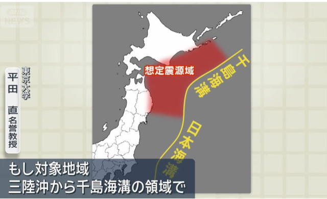 由于本次地震的震源位置恰巧位于千岛海沟和日本海沟附近假定的逆冲型地震震源区内,是日本政府自2022年12月设立的“北海道・三陆冲后发地震注意报”的观测区域。