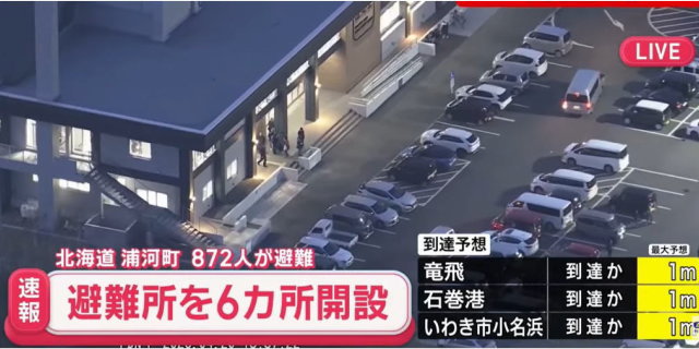 日本气象厅已于晚间7时30分(东京时间)发布了“北海道・三陆冲后发地震注意情报”。