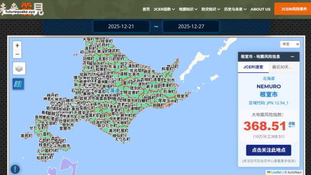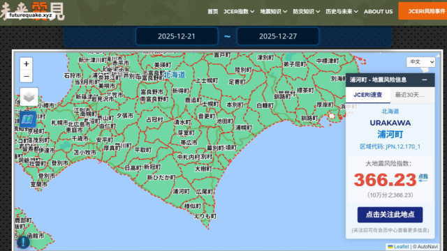 北海道今日正处于历史低温天气,冬季夜晚发生地震会放大震后灾害。JCERI提醒相关地区人员关注下周地震风险。